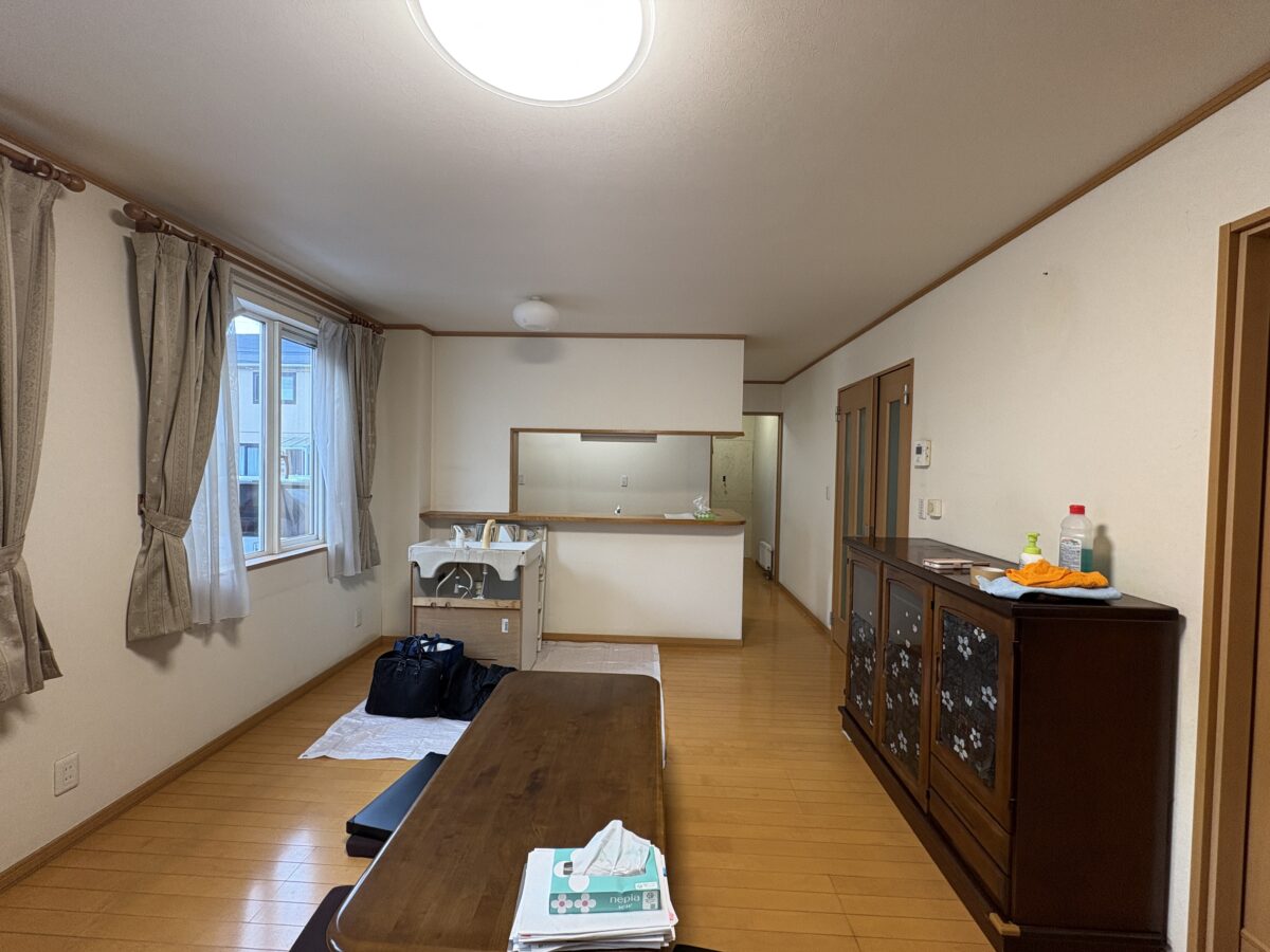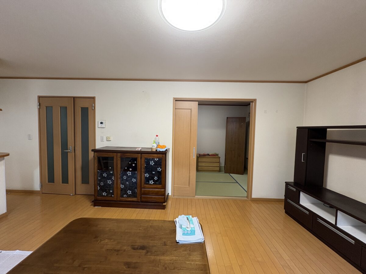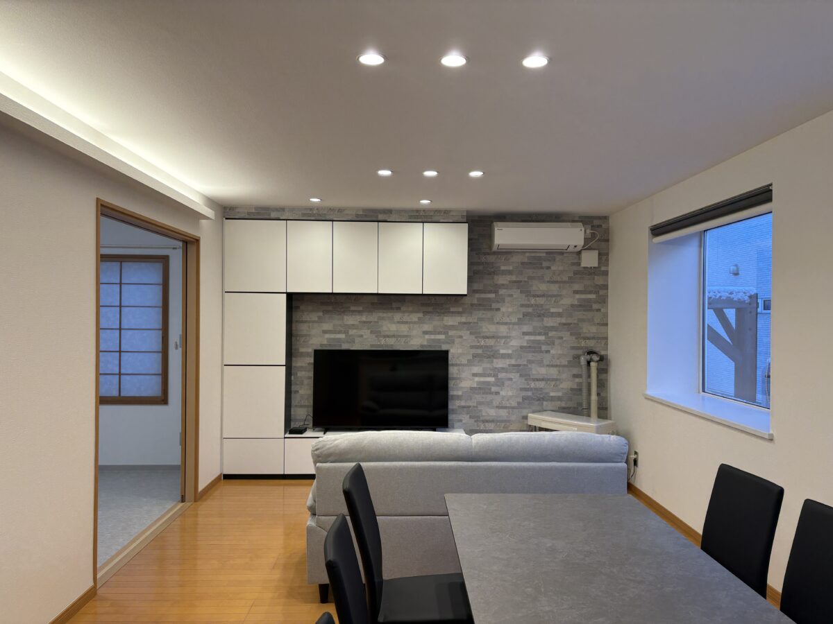 リビング床材はそのままで壁天井の壁紙交換