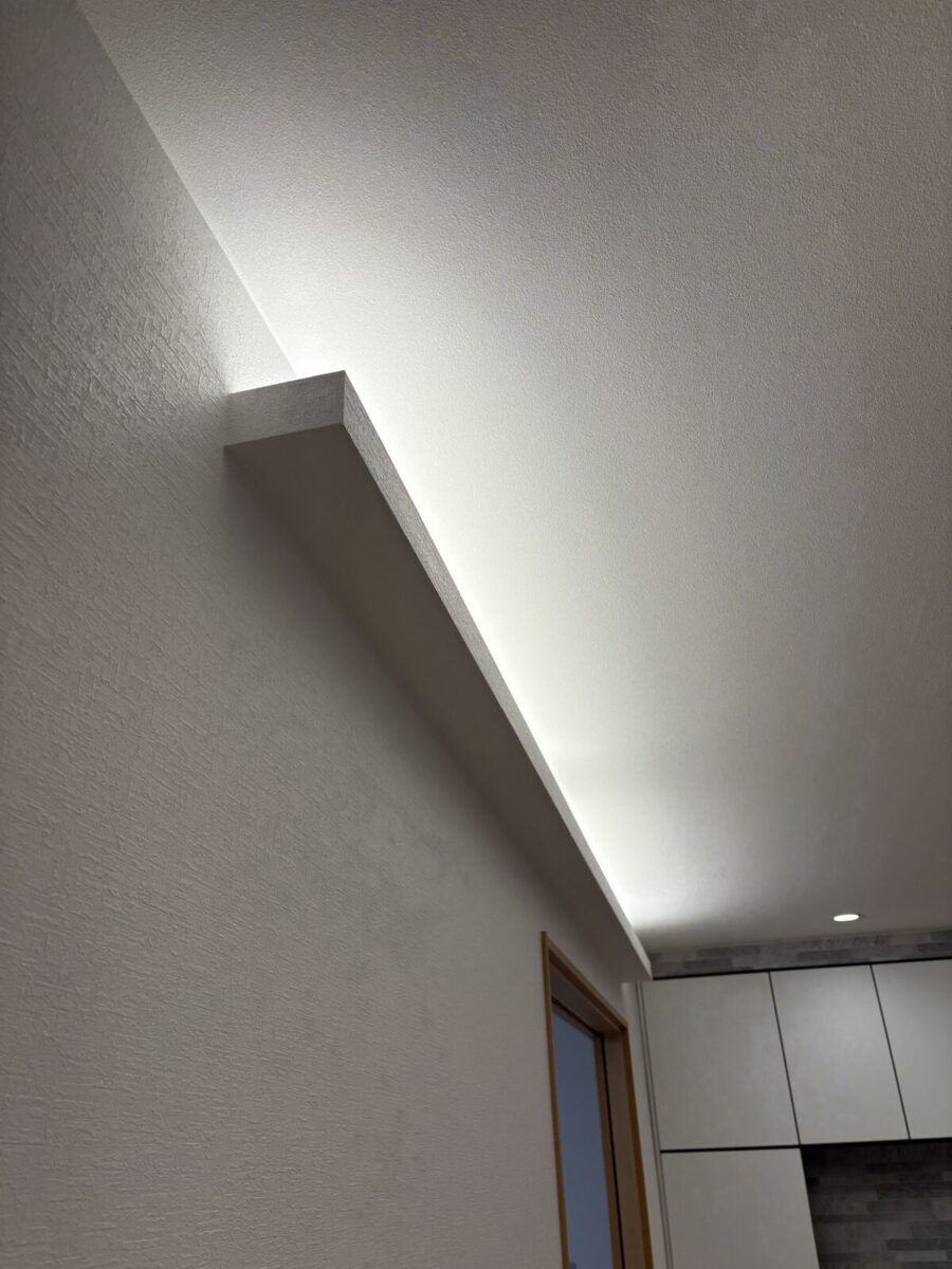 リビングにご主人様たっての希望で間接照明を施工しました。